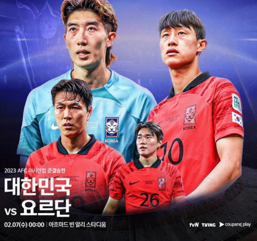 이번 요르단과 붙는 4강전은 TVN, TVN스포츠, 티빙, 쿠팡플레이에서 무료로 생중계를 즐기실 수 있습니다.